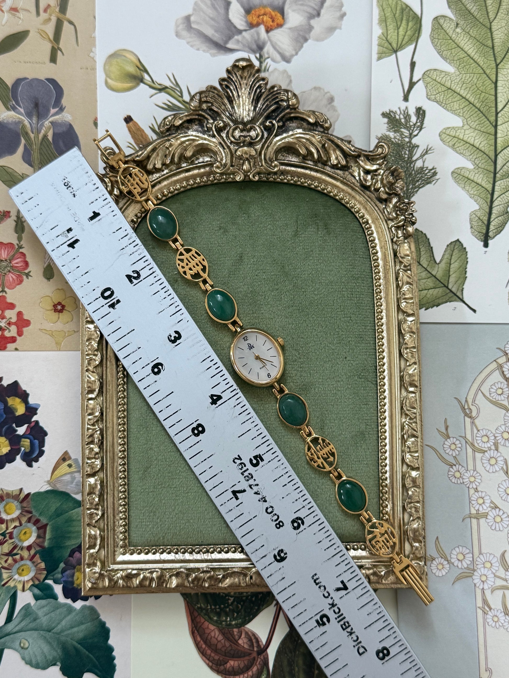 Nonworking Vintage Gold Tone Jade Band Watch