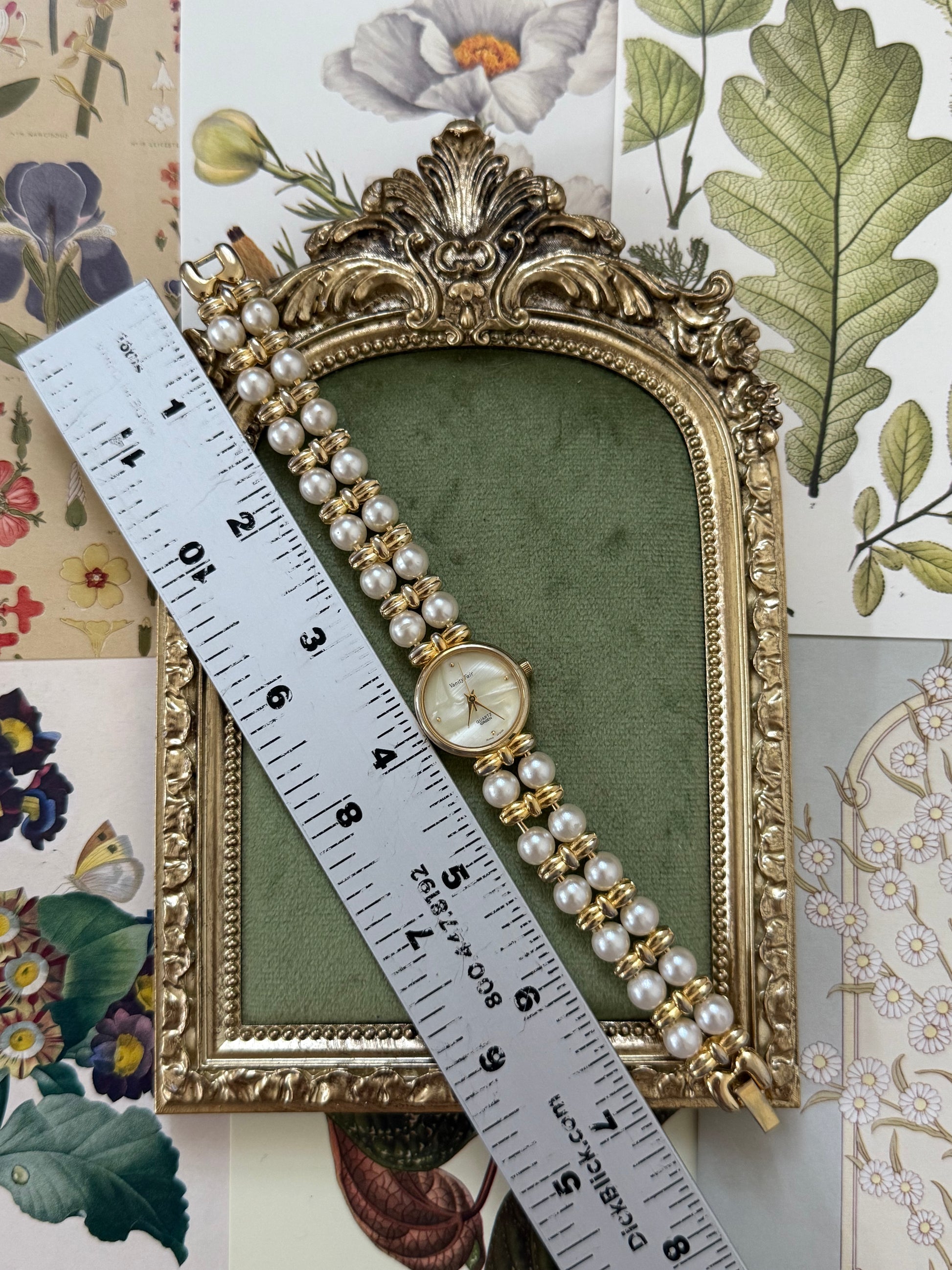 Nonworking Vintage Gold Tone Pearl Band Watch
