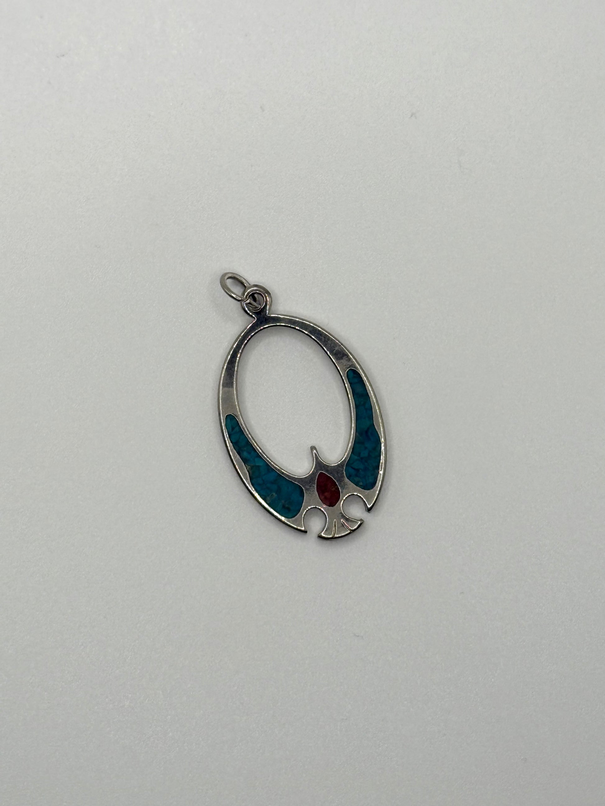 silver tone crushed turquoise and coral pendant