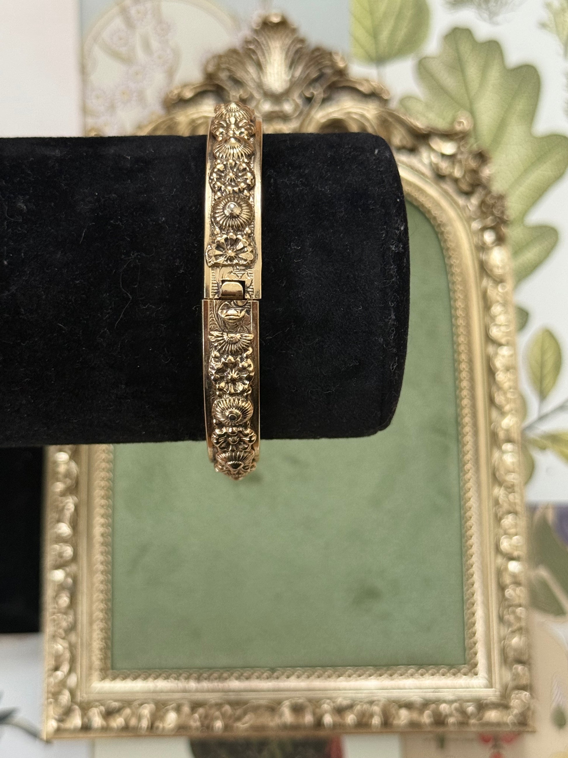 Vintage Gold Tone Floral Hinge Cuff Bracelet