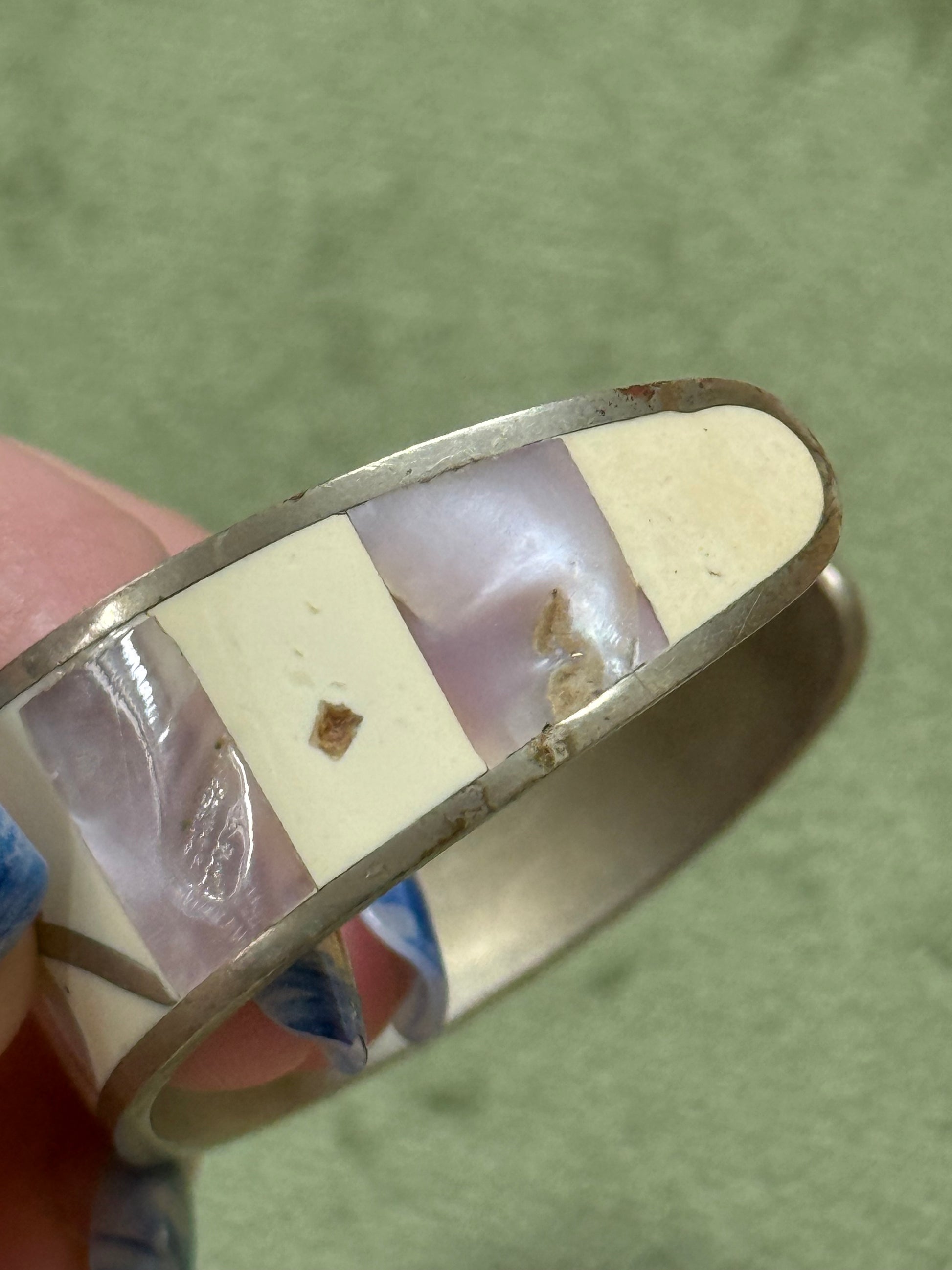 Vintage Silver Tone Abalone Inlay Cuff Bracelet