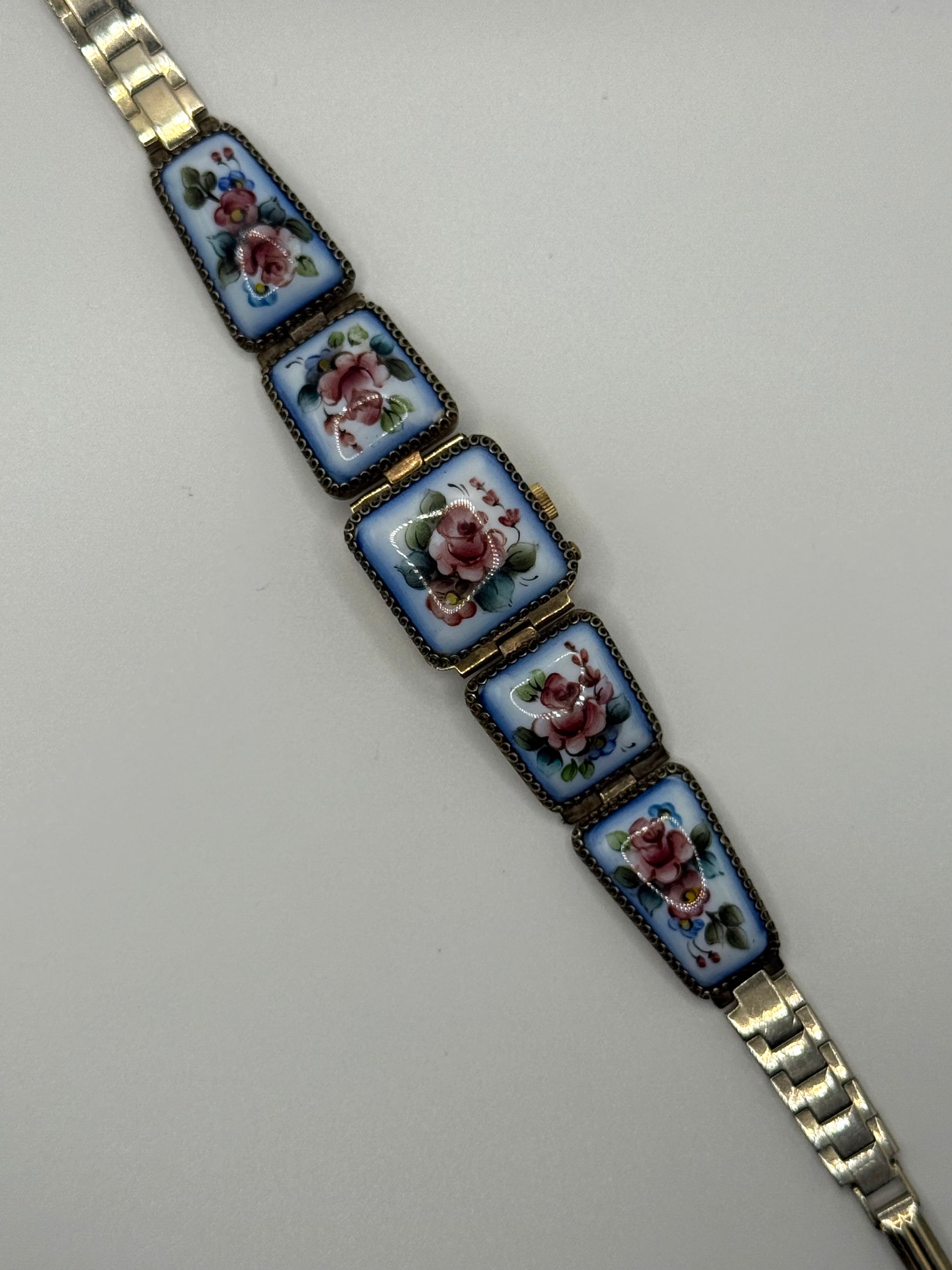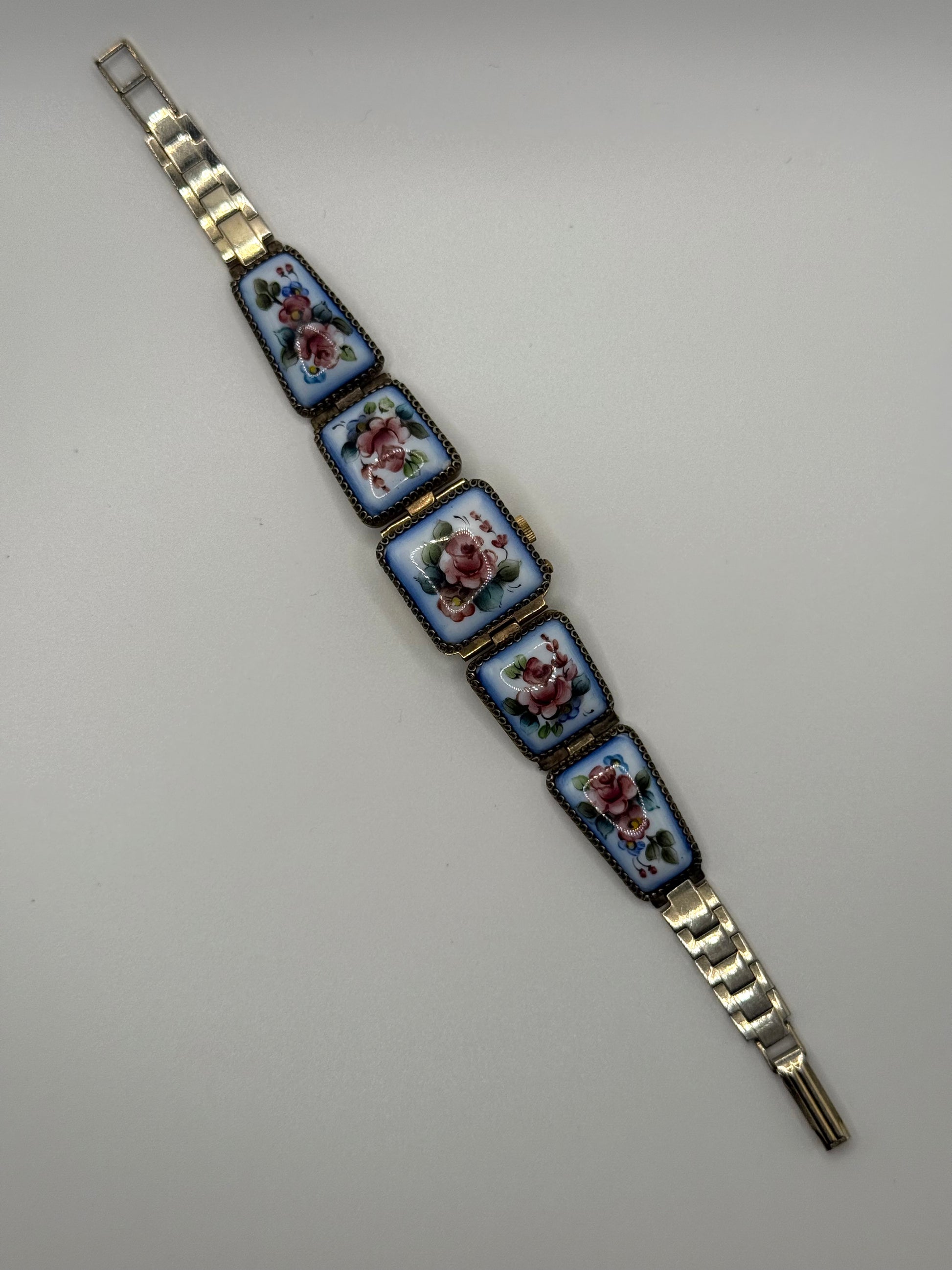 working gold tone soviet enameled wind up peek a boo watch