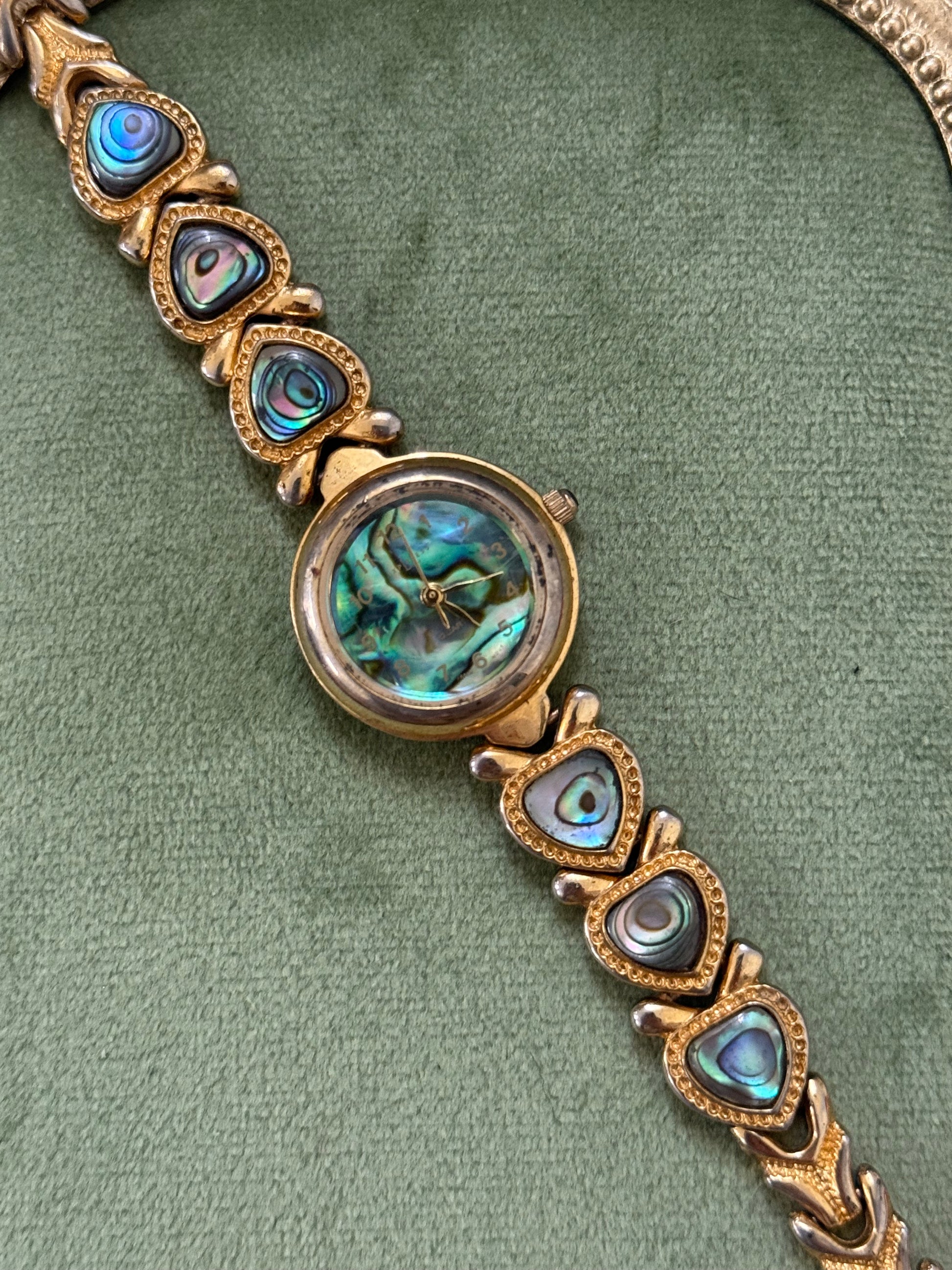 Working Vintage Gold Tone Abalone Heart Watch