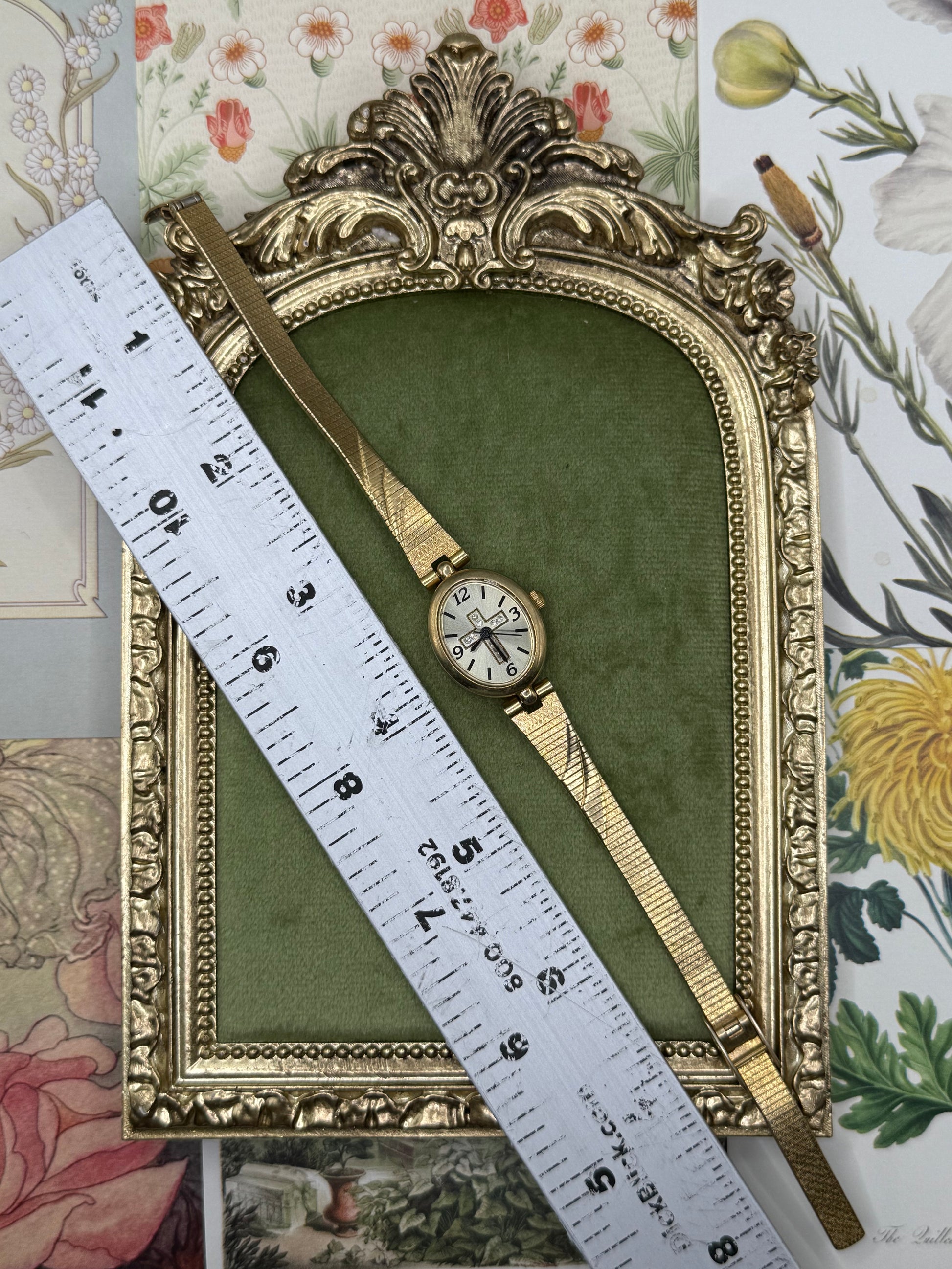 Working Vintage Gold Tone Adjustable Cross Watch
