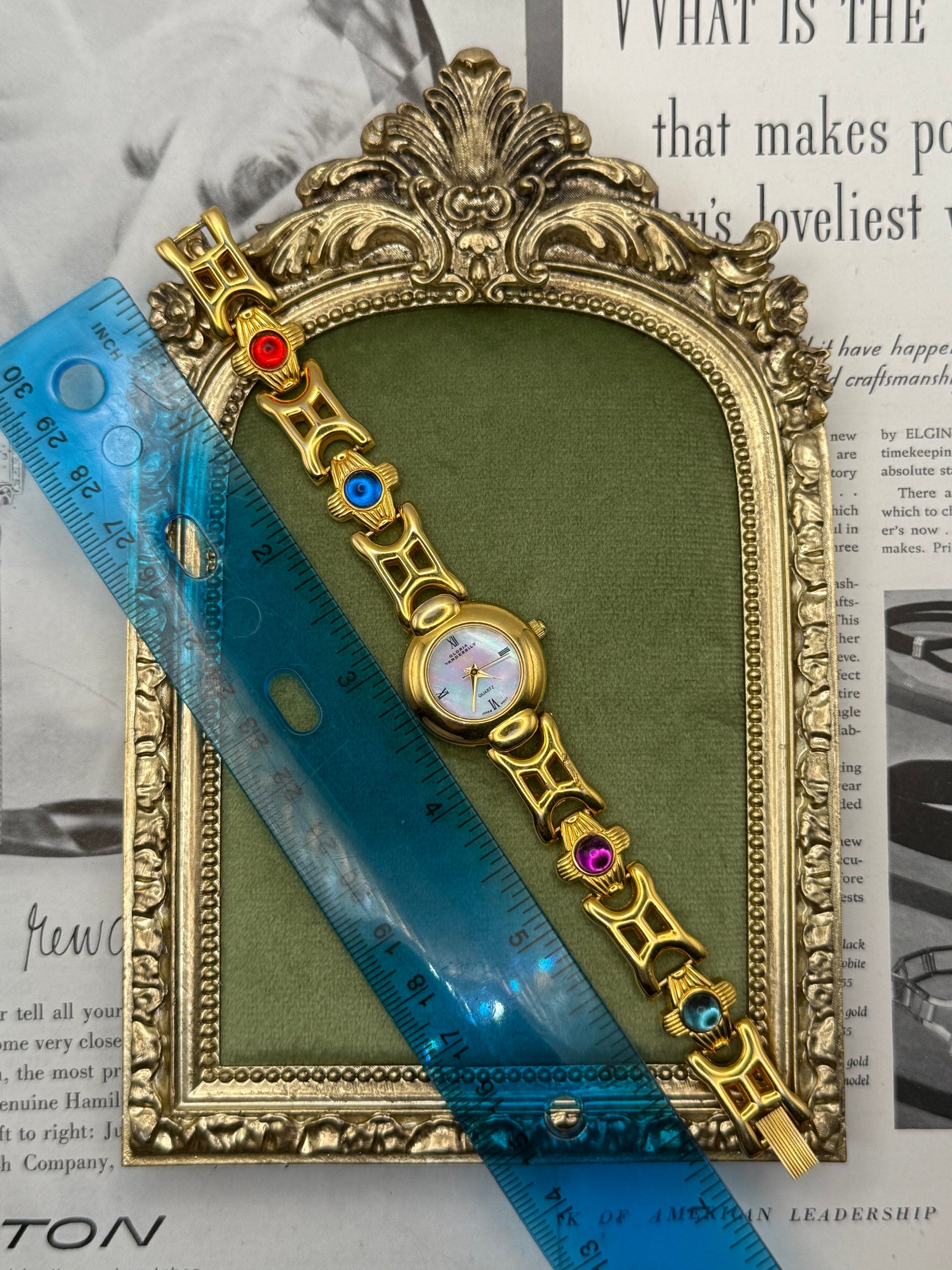 Working Vintage Gold Tone Gemstone Watch