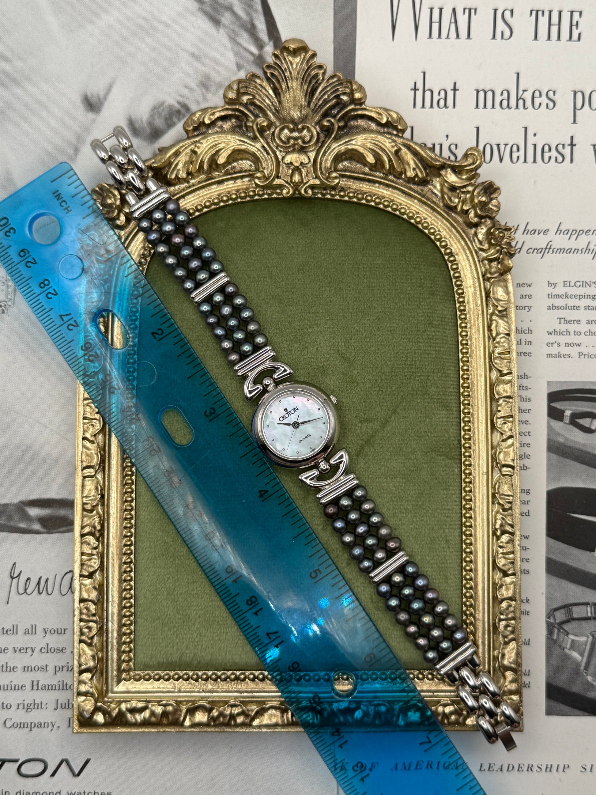 Working Vintage Silver Tone Black Pearl Watch