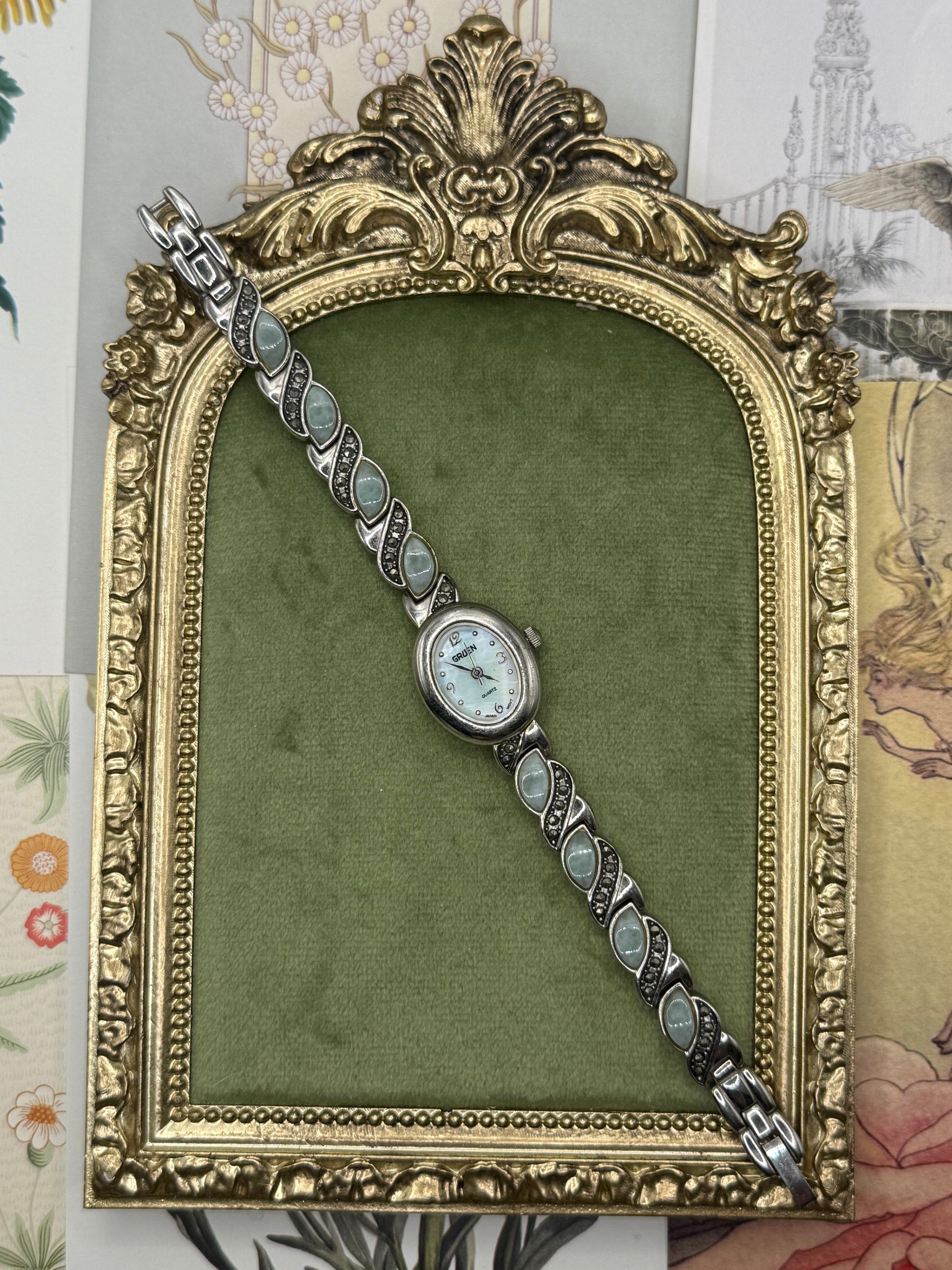 Working Vintage Silver Tone Jadeite Watch